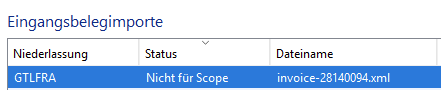 Wenn Scope mit einem E‑Invoicing‑Netzwerk wie Peppol verbunden ist, werden alle eingehenden Rechnungen automatisch abgerufen und in die Applikation Eingangsbelegimporte übernommen. Einige Rechnungen – in der Regel administrative Kostenrechnungen – sollen jedoch nicht in Scope gebucht werden, sondern in einem externen System, z. B. einer Finanzbuchhaltung. Zudem sollen diese externen Rechnungen häufig nicht für alle Scope‑Sachbearbeiter sichtbar sein. Zur Unterstützung dieser Anforderungen wurde die Applikation Eingangsbelegimporte erweitert.