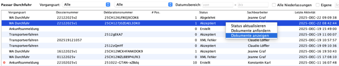 Wenn man eine WA-D oder WA-A mit Dokumenten hat, kann man auf dem Vorgang mit Rechtsklick Dokumente anzeigen öffnen.