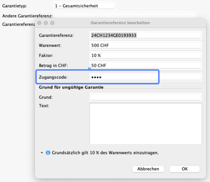 Der Zugangscode (Accesscode) einer Sicherheit wird in Scope neu verschlüsselt angezeigt. Diese Verschlüsselung kann mittels Passworteingabe aufgehoben werden.