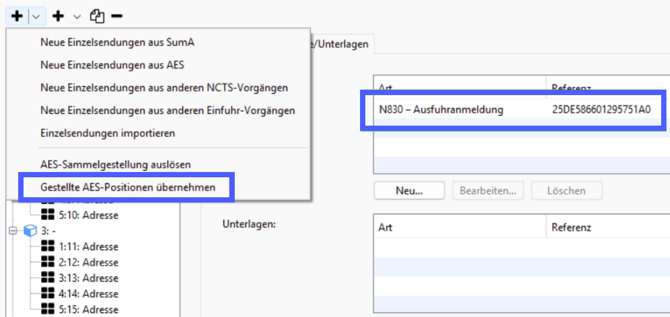 2. Übernahme der AES-Daten in die Versandanmeldung