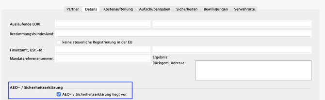 Der Wirtschaftsbeteiligte eines der beiden Partner hat nicht den Status „DE AEO“ oder „Sicherheitserklärung“.