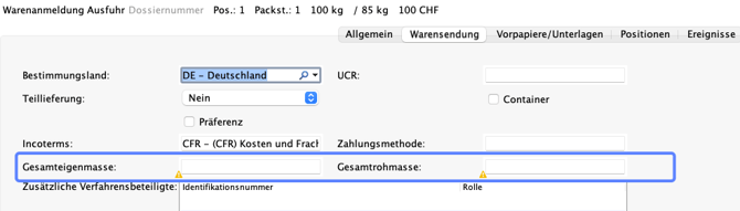 Im Reiter Warensendung gibt es zwei neue Felder, welche zur Kontrolle und Verteilung von Gewichten auf Positionsebene unterstützen sollen.