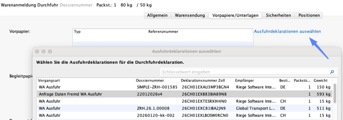 Die GDRN wird (sobald diese auf „akzeptiert“ stehen) auch im Modul Durchfuhr - Vorpapiere zur Auswahl zur Verfügung stehen.