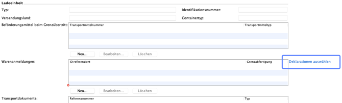 Wenn eine TA erstellt wird, gibt es neu die Möglichkeit, aus einer Liste die WA-Ds und WA-nDs unter Deklarationen auszuwählen.