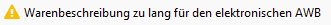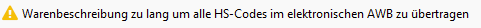 E‑Freight und Airline Messaging: Warnhinweis hinzugefügt, wenn die Angabe zur Art der Ware oder die HS‑Codes im eAWB zu lang sind.