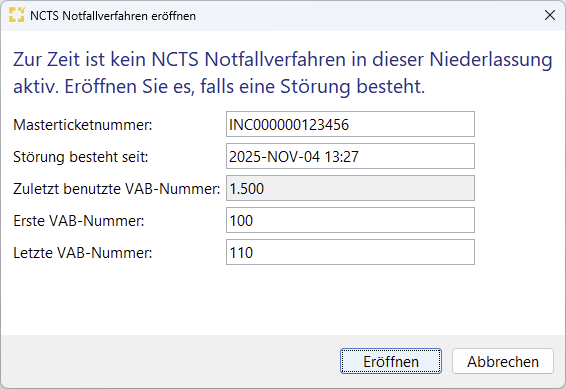 Wie erstelle ich im Falle einer Störung ein NCTS-Verfahren im Notfallverfahren?