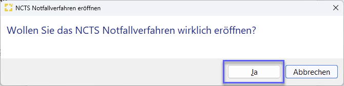Um das Notfallverfahren eröffnen zu können, gibt es im Modul NCTS die Aktion „Notfallverfahren“.