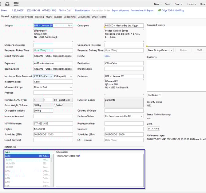 - ACID (eine eindeutige 19-stellige Nummer, die über das ACI-System vergeben wird und die von der ägyptischen Zollbehörde genehmigte Sendung identifiziert)