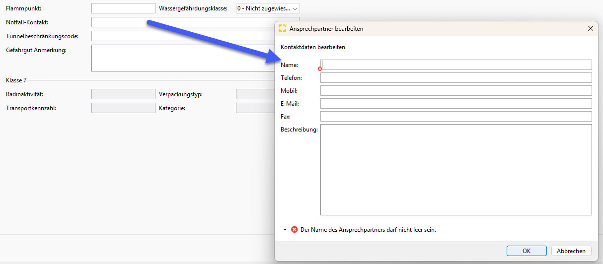 Im Feld „Notfall-Kontakt“ können Sie über das Dropdown-Menü „Ansprechpartner bearbeiten“ die nötigen Informationen erfassen: