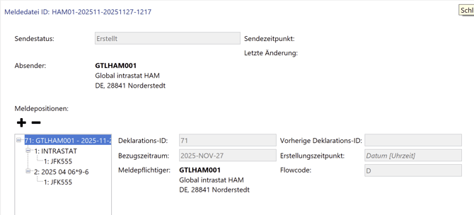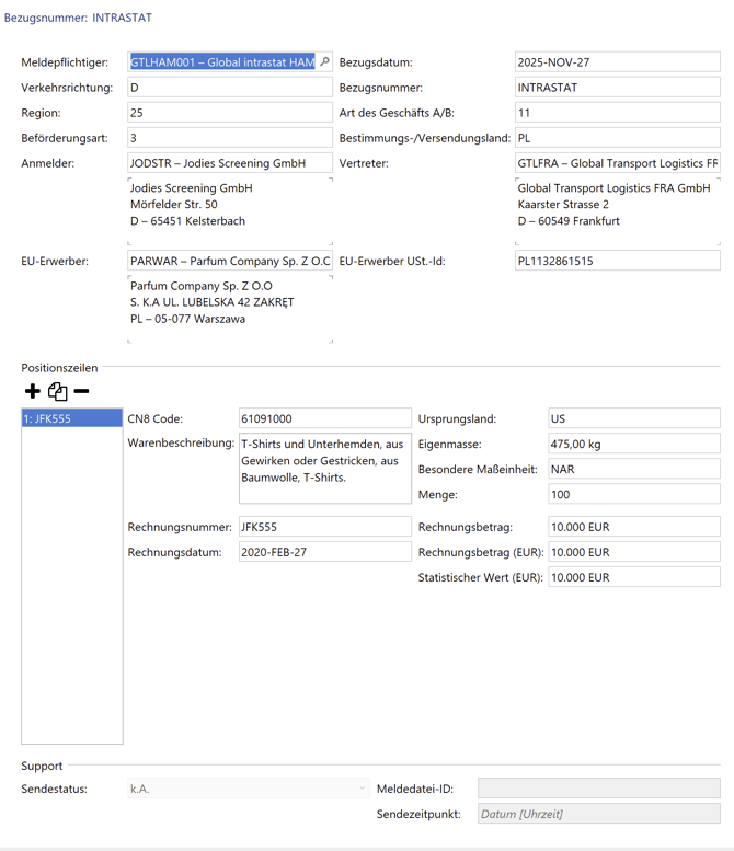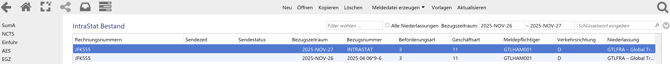 Nach Überlassung und Erstellung des Steuerbescheides (Status 60 - 65), werden die Daten in die Intrastat übernommen.