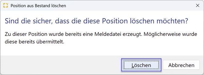 Wurde die zu löschende Position in eine Meldedatei übernommen, so wird die folgende Meldung angezeigt.
