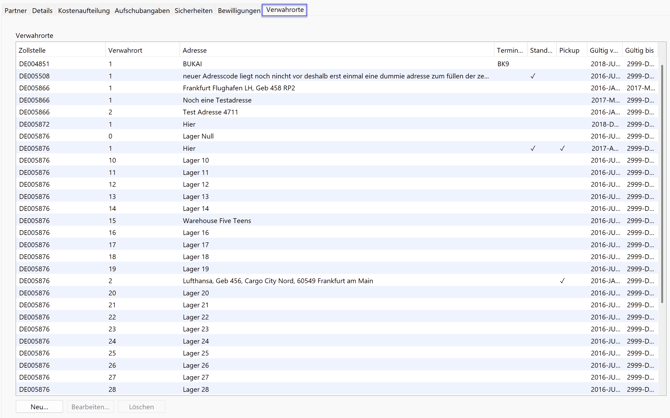 Im Reiter „Verwahrorte“ können Verwahrorte für die SumA erfasst werden.
