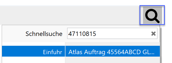 Wird nach einem Kriterium in der globalen Suche gesucht, werden alle Vorgänge mit dieser Referenz angezeigt.