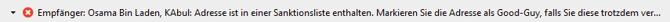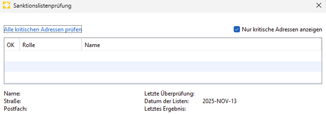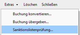 Wählen Sie direkt im Adressfeld oder über das Menü Extras die Funktion „Sanktionslistenprüfung“ aus.