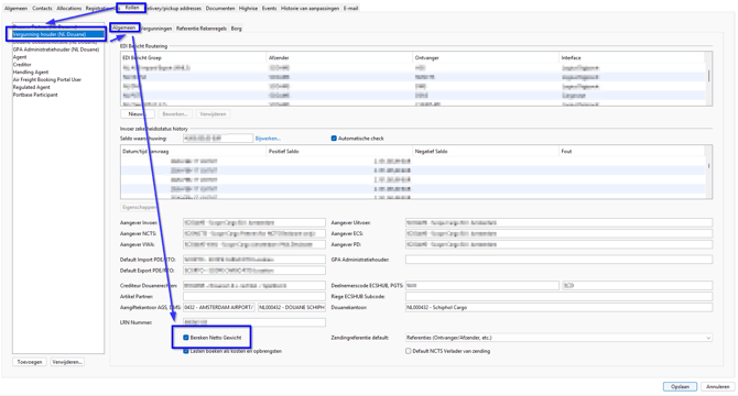 De automatische berekening van het nettogewicht in de aangifte kun je (de-)activeren via het veld “Bereken Netto Gewicht” op het tabblad "Algemeen" van de rol “Vergunning houder (NL Douane)” op de branchepartner.