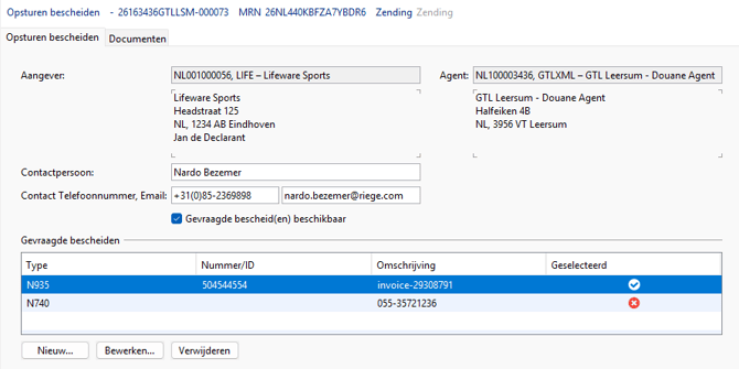Zodra de gewenste bescheiden zijn toegevoegd, kun je het bericht insturen. De Douane kan de aangifte daarna verder afhandelen.