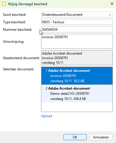 Om een document toe te voegen, dubbelklik je op de gewenste regel of gebruik je de knop Bewerken.
