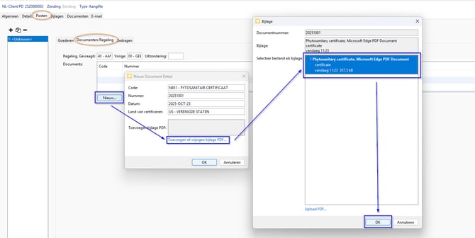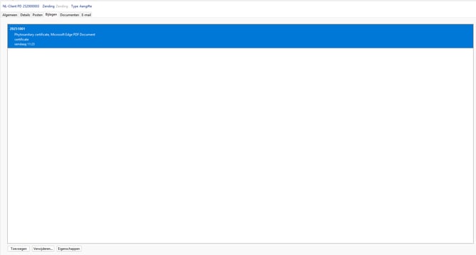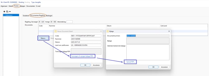 In de PD-aangifte kunnen bescheiden worden vermeld. Daarnaast kun je de PDF van het document (certificaat) uploaden en koppelen aan de aangifte. Deze wordt vervolgens samen met de aangifte naar de NVWA verzonden.