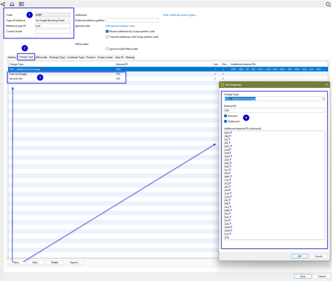 4. For the additional surcharges, please check if there is a charge type available. If not create a new charge type: ASC – Additional Surcharge, and ensure that all corresponding “additional external IDs (inbound)” listed below are added, excluding FSC and SSC (already mapped in step 3.)