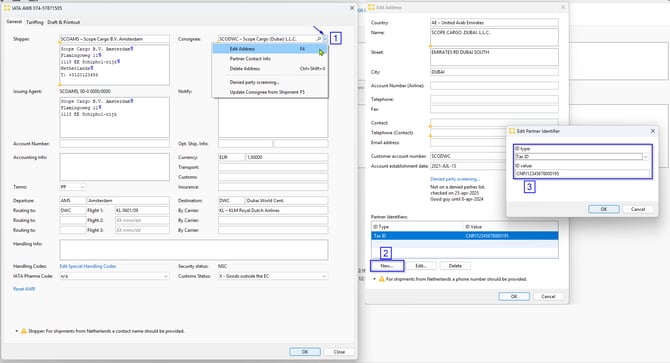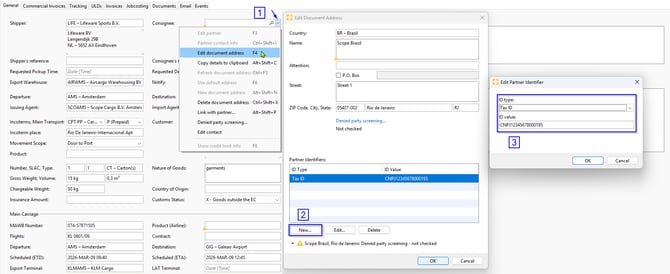 Select the consignee in the IATA AWB-editor