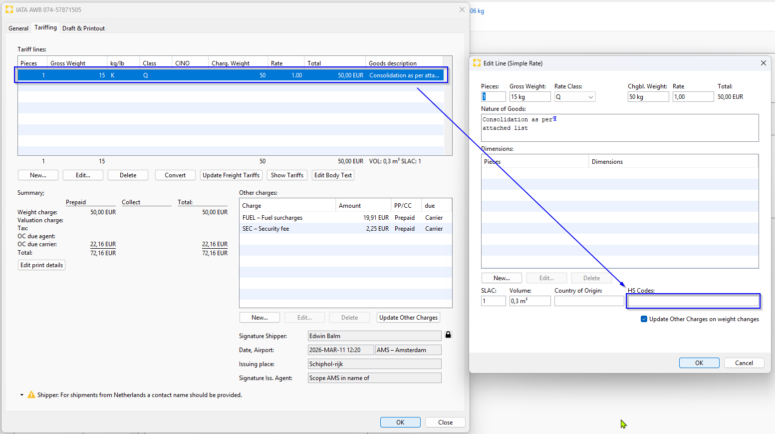 Direct in the IATA-AWB editor: