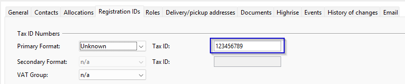 - Add the partner identifier with ID type Tax ID and the value in the value field