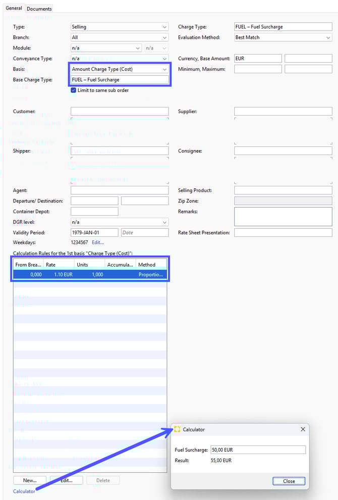Example: Your selling rate for the fuel surcharge shall be 10% on top of the buying rate of the fuel surcharge.