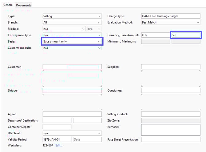 Example: You want to charge your customer a standard fee of 50.00 EUR for the cost type Handling.
