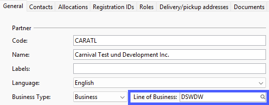 Each business partner can be assigned to a line of business.