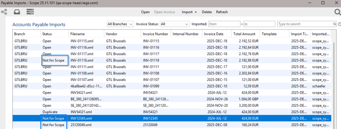 A continuación, Scope asignará el estado “Not for Scope” a la factura electrónica.